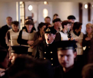 Brian McCardie as First Officer Murdoch shouting orders during the iceberg collision. According to McCardie this interpretation shows the 'herioc' side of Murdoch.