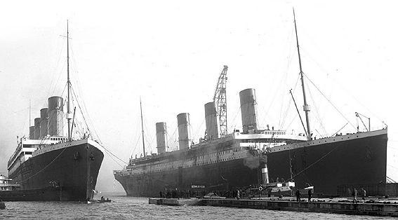 Olympic (left) and Titanic during construction at Harland & Wolff, Belfast.