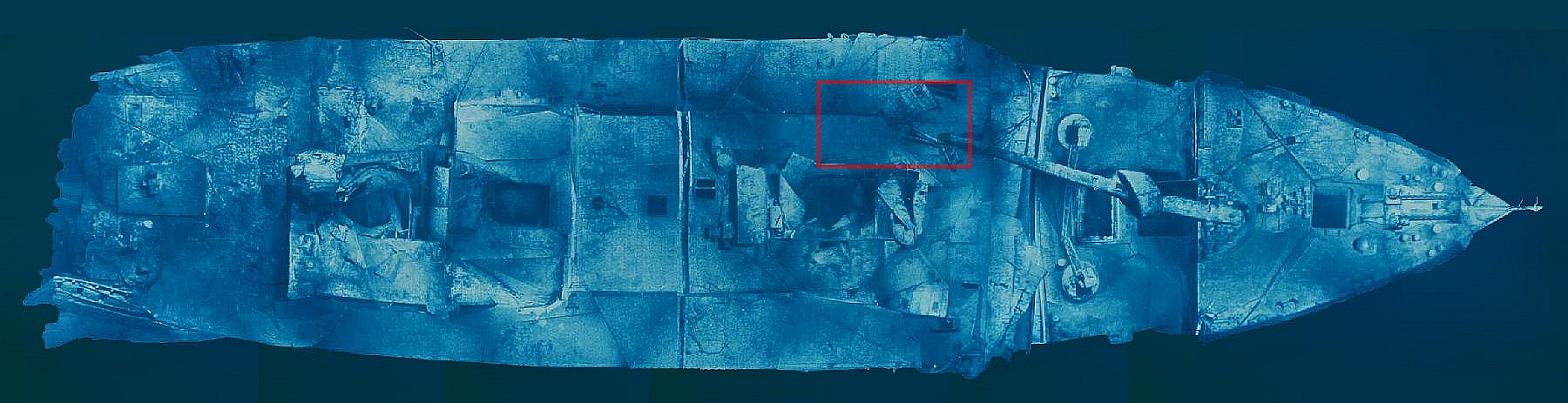 Officers' Quarters Deckhouse – The vertical walls of the Officers' Quarters deckhouse continue to detach themselves from the structure, starting from the forward end where much of the bridge was torn apart during the sinking by hydrodynamic forces and the falling mast. On the starboard side, the outboard wall of the deckhouse has separated past Fourth Officer Boxhall's cabin and is now lying on the deck. Additional corrosion was noticed in the wall aft of the Officers' Entrance.
