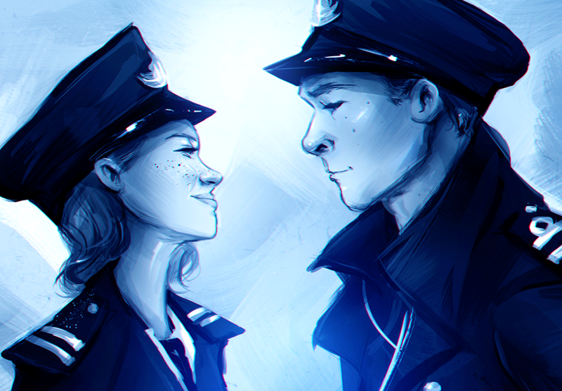 A drawing by the author,Giselle, of Officer William Murdoch and Officer Esther Bailey (Click image to enlarge)