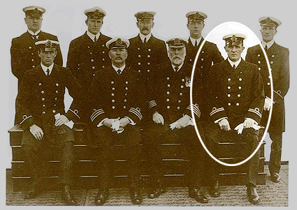 Captain Smith and Olympic's senior officers. Murdoch stands to the left, a little detached from the main group. (Click image to enlarge)