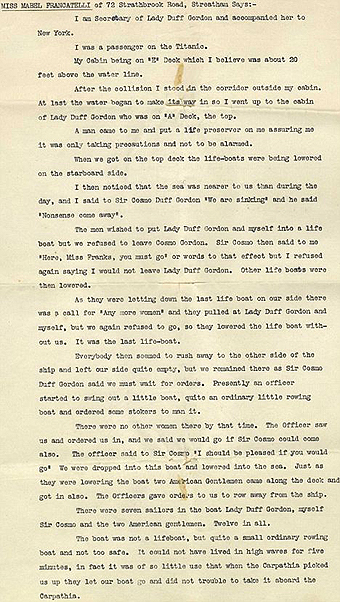 was Lady Duff Gordon’s secretary. At the age of 30 at the time of the sinking, she was of London birth. Her ticket number